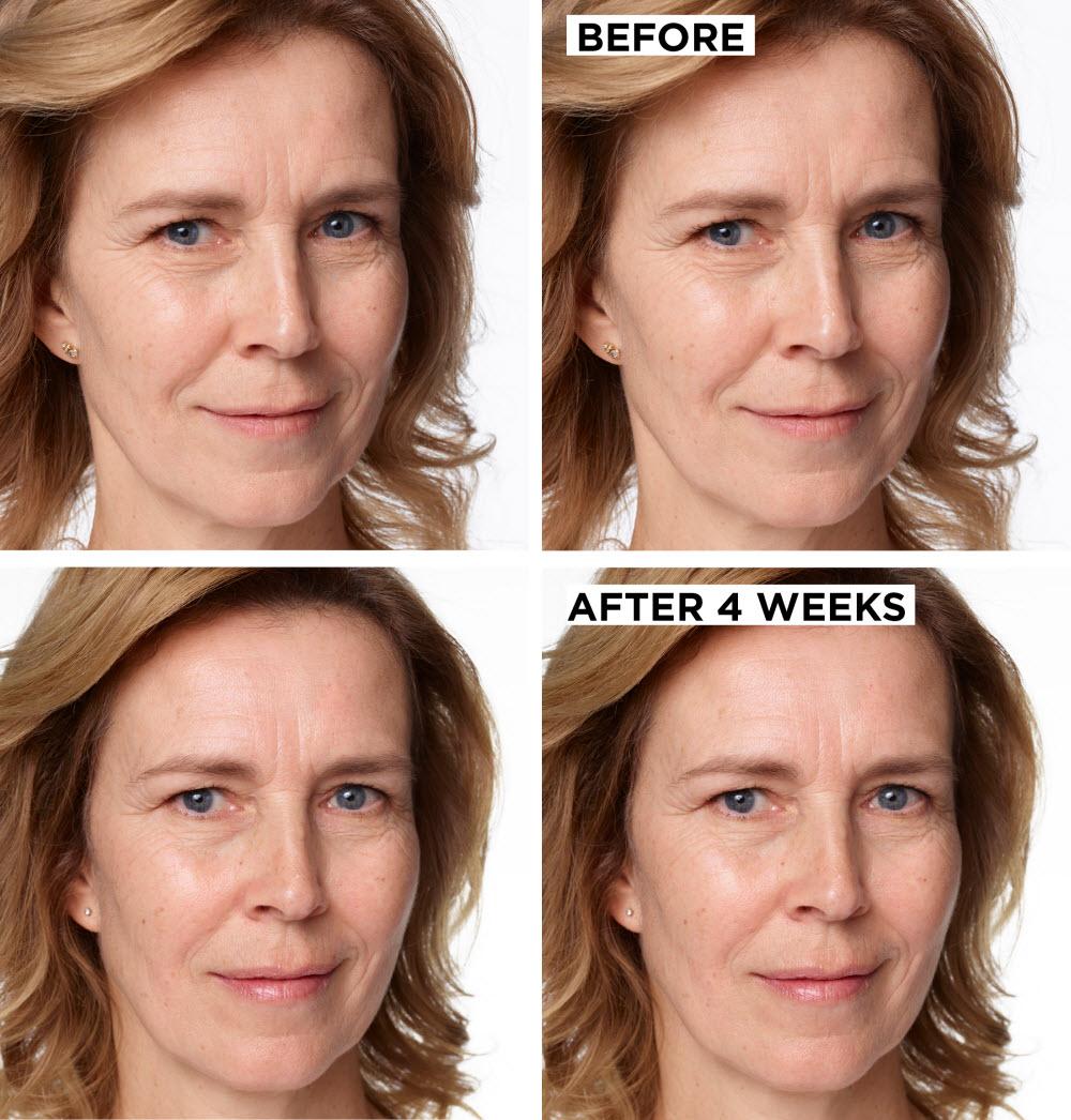 Twee maanden lang brachten ze de crème ‘s morgens en ‘s avonds aan. Daarna werden ze individueel klinisch getest door deskundigen aan de hand van voor-en-na-foto’s. Ze stelden vast dat het uitzicht van de kraaienpootjes met gemiddeld drie jaar verbeterd was (*). Indrukwekkend!
