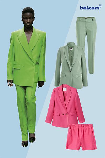 Voor het najaar is vooral het pak populair. Bij bol.com vind je combi’s in alle kleuren van de regenboog. Van de felroze en -oranje kostuums van LolaLiza tot de pistachegroene en kastanjebruine pakken van WE Fashion.