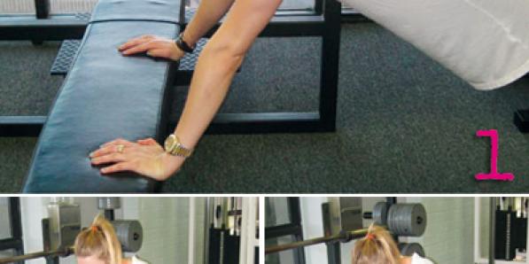Work-out met Whitney Port Oefening: bankdrukken Doel: Strakke armen en buikspieren Hoeveel: Start met sets van 5-10 keer en werk naar 3 sets van 15 toe. De minimale rust tussen de sets is 1 tot 2 minuten. Stap 1: Plaats je handen op de bank en zet je voeten dicht tegen elkaar: denk aan de houding voor push-ups. …
