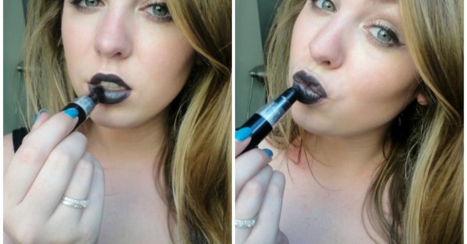 De lipstick is diep zwart en is goed gepigmenteerd.