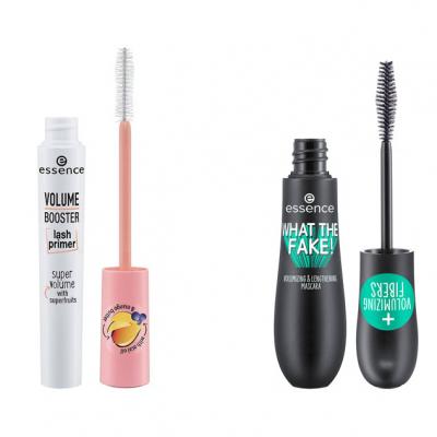 De twee producten die gebruikt worden, zijn de laatste tijd in heel wat filmpjes op het platform te zien. En het is niet moeilijk om te begrijpen waarom! Voor minder dan 6,50 euro krijg je namelijk gitzwarte, volle én lange wimpers. Om welk mascaraduo gaat het nu juist? Wel, het zijn de Essence Volume Booster Lash Primer en de What The Fake! Volumizing & Lengthening Mascara die momenteel zo geliefd zijn. Beide items zijn ook gewoon bij ons te koop.
