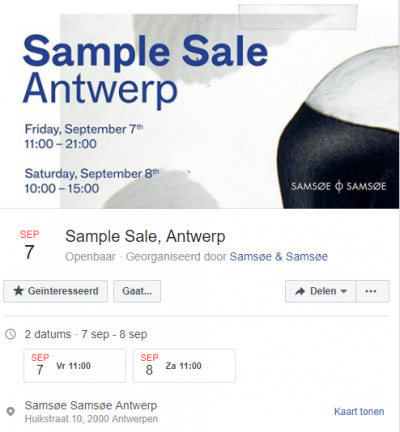 Is er in jouw garderobe nog plaats voor enkele minimalistische designs? Dan moet je dit weekend in Antwerpen zijn. Samsøe & Samsøe organiseert vrijdag en zaterdag opnieuw een sample sale. In hun showroom kan je vrijdag 7 september van 11u tot 21u kleding en accessoires voor vrouwen en mannen scoren. Is het te laat voor jou om een dagje verlof te nemen? Maak je dan maar geen zorgen, want ook op zaterdag 8 september van 11u tot 15u kan je er nog aan aangepaste sampleprijzen shoppen.