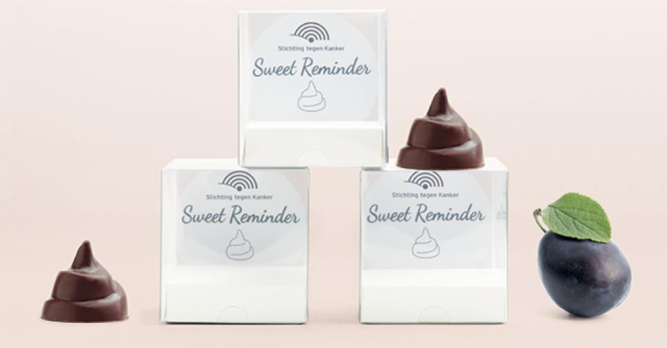 Het is makkelijk kanker te zien als een ver-van-mijn-bed-show, iets wat jouw geliefden wel niet zal overkomen. Spijtig genoeg is dat vaak niet de realiteit. Laat daarom gratis en voor niets een chocoladen drolletje met informatiefolder over darmkanker opsturen naar je ouders, grootouders, tante of nonkel. Je kan een Sweet Reminder bestellen op de site van Stichting Tegen Kanker. Bovendien kan je er alles lezen over darmkankeropsporing.