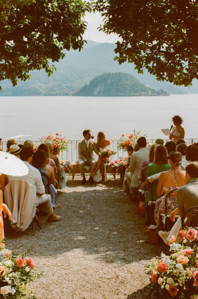‘De ceremonie vond plaats met uitzicht over het meer. Tijdens onze geloften kwamen er af en toe wat bootjes langs en er speelde een dame live harp muziek. Het leek echt een droom hoe alles zo mooi bij elkaar kwam nadat het de hele ochtend had geonweerd. We zijn tijdens de ceremonie officieel getrouwd door de burgemeester van Varenna. Daarnaast waren er speeches van mijn broer, de zus van Teun en werd de gehele ceremonie begeleid door een van mijn beste vrienden, een ware rots in de branding die het hele weekend met alles voor ons klaar stond.’