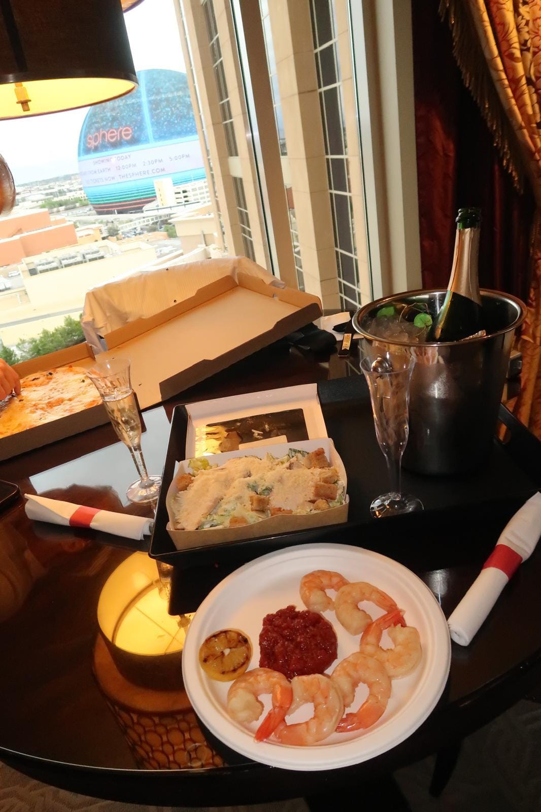 ‘René liet zijn haar doen en zijn baard trimmen. We bestelden net voor onze trouw nog eten via roomservice, waaronder pizza en scampi’s, en dronken cava terwijl we ons op ons gemak aan het klaarmaken waren.’