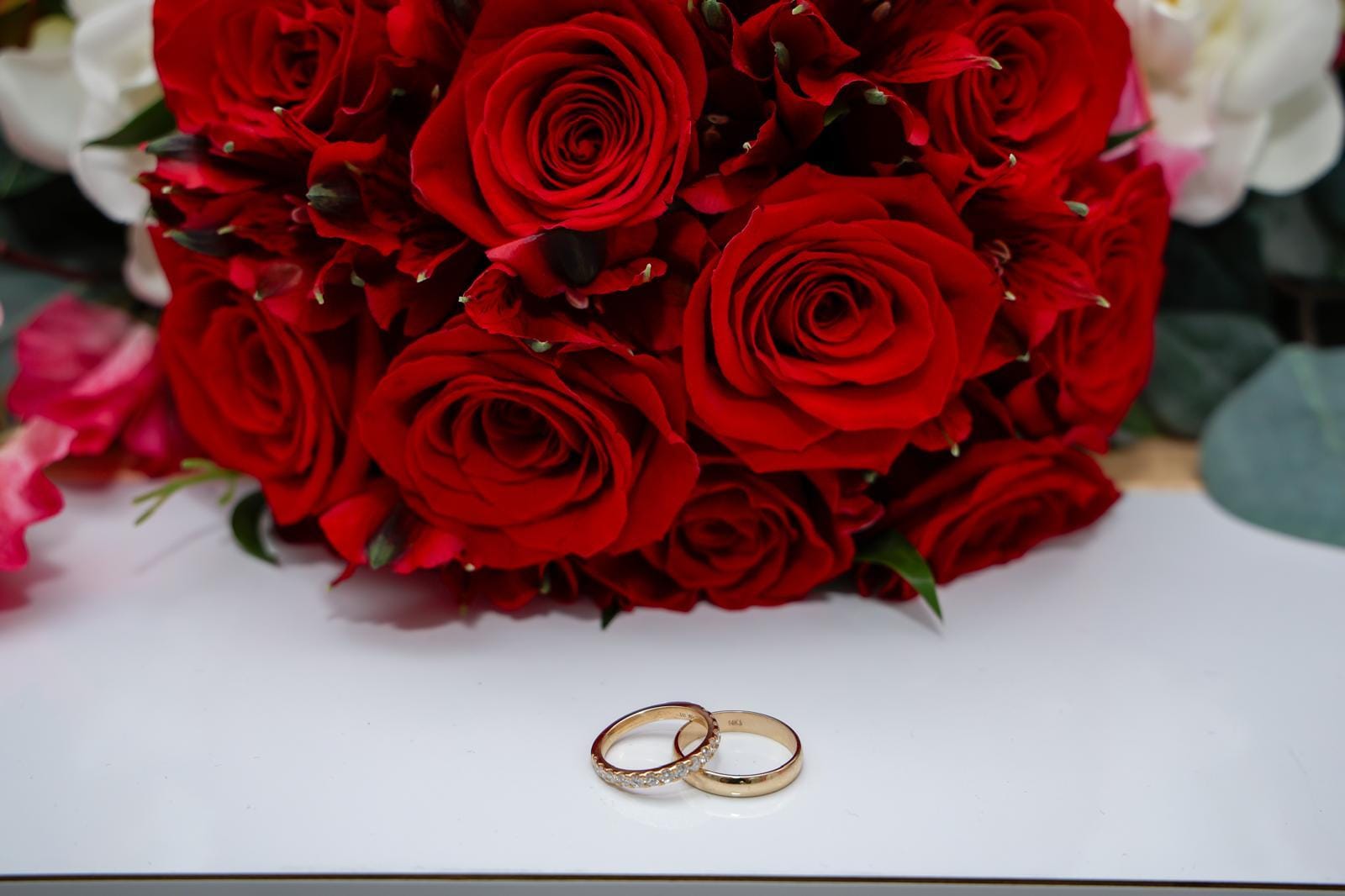 ‘Onze ringen hebben we de dag ervoor samen gekozen bij een lokale juwelier die daar al jaren een gevestigde waarde is. Dat was ook een superlieve vrouw.’