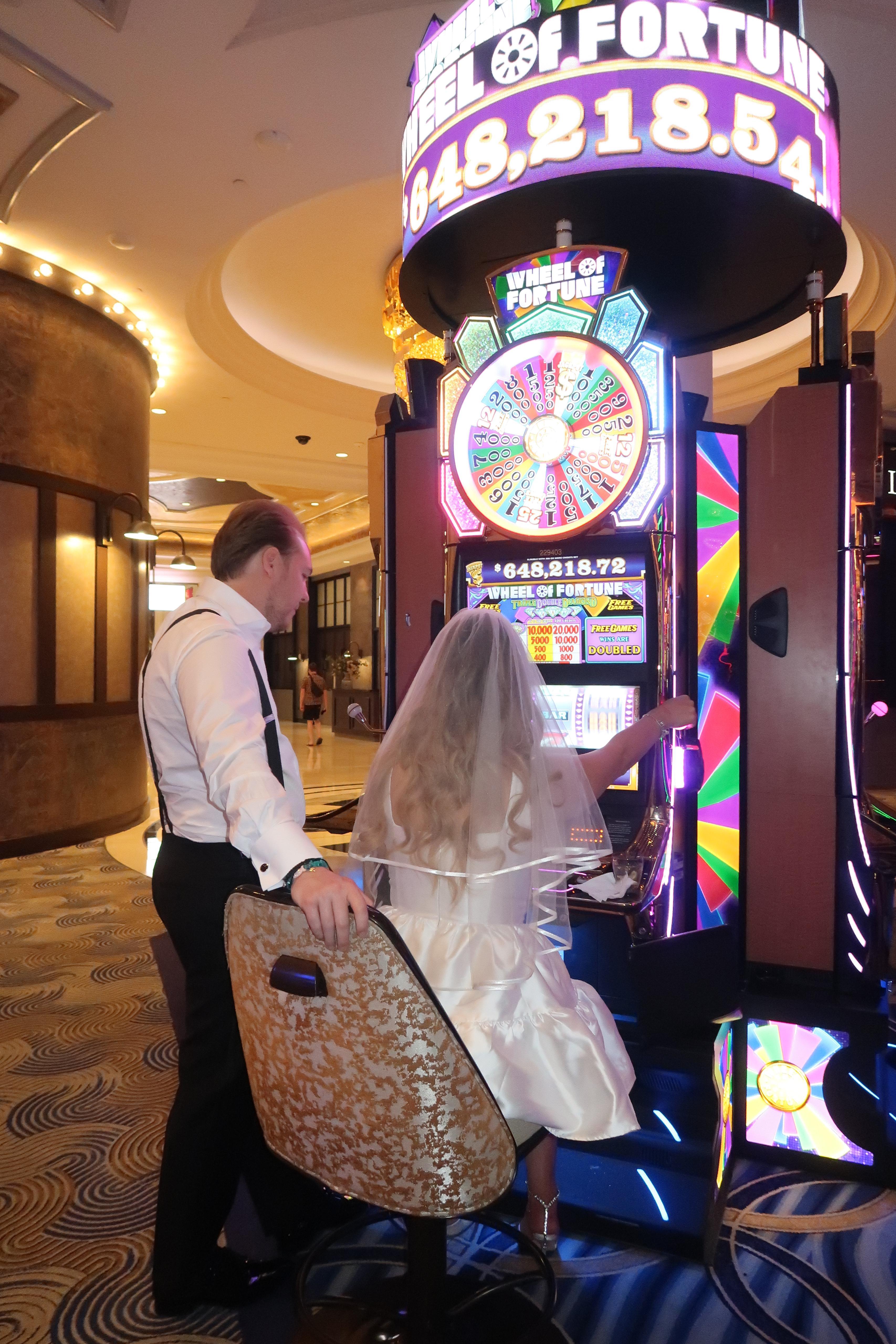 We verbleven in Las Vegas in een heel mooie suite in The Palazzo in The Venetian, waar je beneden allerlei casino’s hebt. Daardoor werd dat gevoel van elopement in Las Vegas nog meer versterkt. We hadden geen stress en voelden geen druk. René liet zijn haar doen en zijn baard trimmen, we maakten ons op ons gemak klaar en we bestelden net ervoor nog eten via roomservice. Dan namen we een Uber naar de befaamde Little White Wedding Chapel. Dat was een heel mooi, intiem en emotioneel moment, net omdat niemand ervan wist en we gewoon met ons tweetjes waren. In tegenstelling tot wat mensen denken, vond ik dat niet commercieel, maar net heel natuurlijk en ongedwongen. Misschien komt het ook doordat ik al naar veel glamoureuze events ga in het dagelijkse leven dat een groot feest niet hoefde voor mij. We hebben gewoon gedaan waar we zin in hadden. Na onze trouw zijn we samen gaan eten en hebben we op de slotmachines gespeeld. Het was een heel mooie dag.’