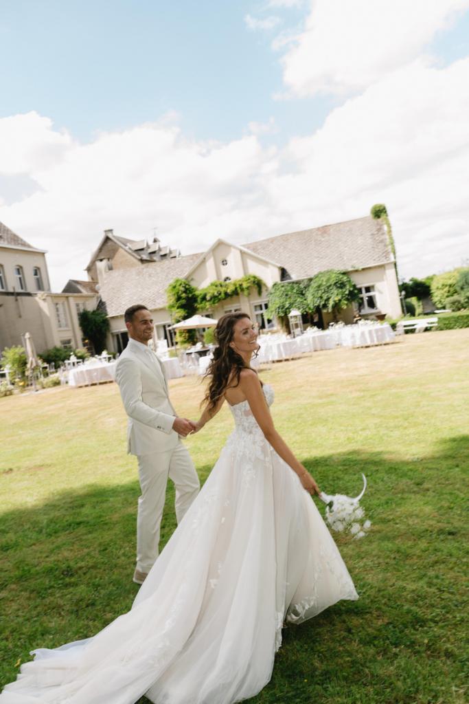 ‘Onze tip? Begin op tijd met plannen! Wij vonden pas een geschikte locatie enkele maanden voor onze trouw en daardoor begon de hele planning eigenlijk veel te laat. In combinatie met een voltijdse job, een huishouden, een druk sociaal leven én mijn perfectionistische kantje was dat soms behoorlijk pittig. Alsof dat nog niet genoeg spanning was, besloten we ook nog eens tien dagen voor de trouw te starten met danslessen om een choreo in te studeren voor onze openingsdans. Het was écht de kers op de taart om de zenuwen nog wat extra aan te wakkeren, maar tegelijk een van de leukste beslissingen die we namen.’