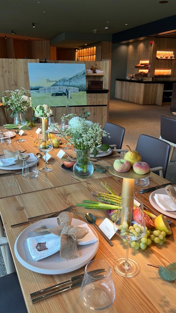 Feest twee vond plaats in de Italiaanse bergen, waar één van de activiteiten een berghike met Aperol Spritz en kaiserschmarnn als lunch was. Bij de afdaling hebben we samen met alle vrouwen fluitenkruid (witte bloemetjes die in principe onkruid zijn) geplukt om de tafel ’s avonds te decoreren, aangezien er in de bergen quasi geen verse bloemen/bloemisten te vinden zijn.’