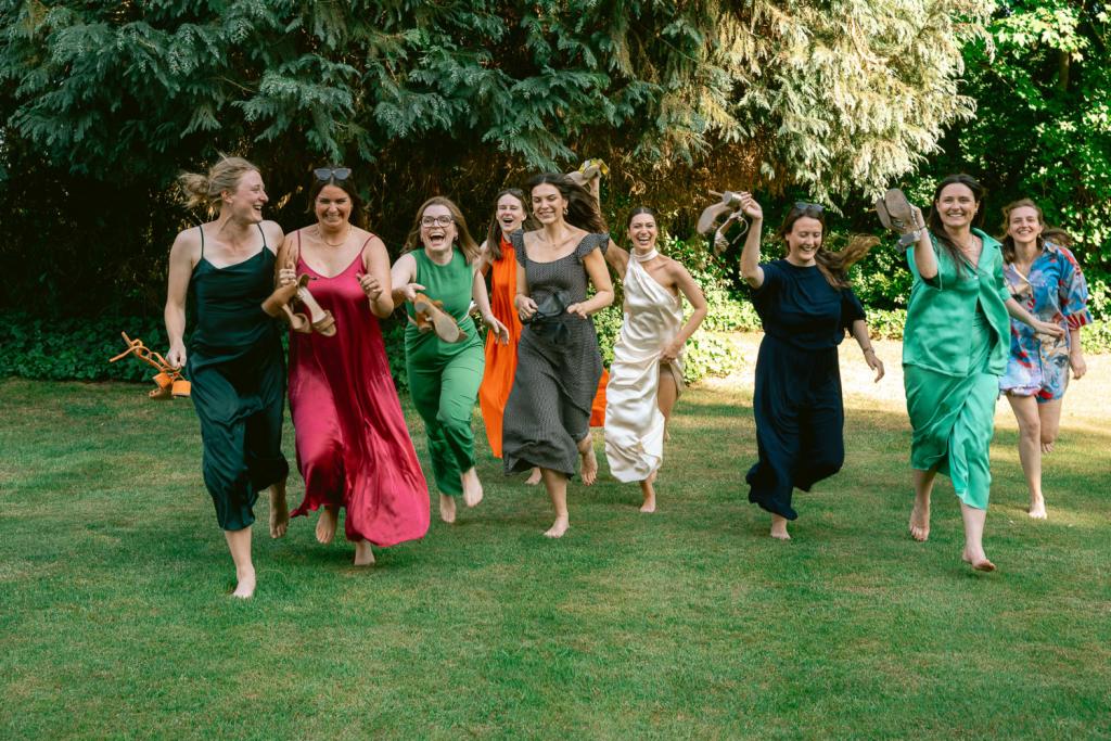 ‘Bruidsmeisjes hadden we niet echt, dat concept vond ik wat te Amerikaans. Mijn vriendinnen van op de foto’s zijn mijn scoutsvriendinnen en hadden niet echt een kleurencode mee gekregen. Ze vroegen wel wat ik leuk zou vinden, namelijk kleur en de meesten hadden dit ook aan, wat wel leuk was! Er was wel een kleine groep mensen die een kleurencode meekregen en dat waren de mensen die ook op de ceremonie aanwezig waren. Voor de ladies bright & colorful en de gents dark & classy. Op die manier had iedereen toch nog een vrije keuze om te kiezen wat ze aandeden. Ik wou vooral niemand forceren een kleur of kostuum te dragen waarin ze zich niet goed voelden.’