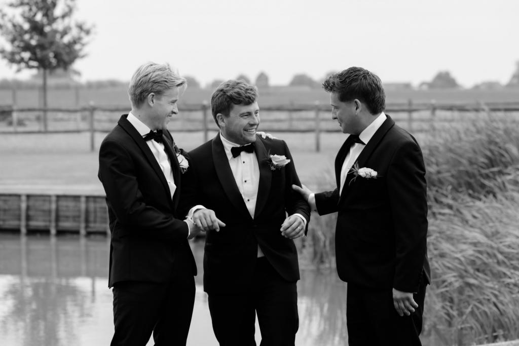‘Simon wisselde van kostuumvest voor de ceremonie. Tijdens de receptie had hij een mooi zwart vest aan, maar mijn favoriet was de witte kostuumvest. Die vind ik hem persoonlijk prachtig staan en is heel feestelijk.’