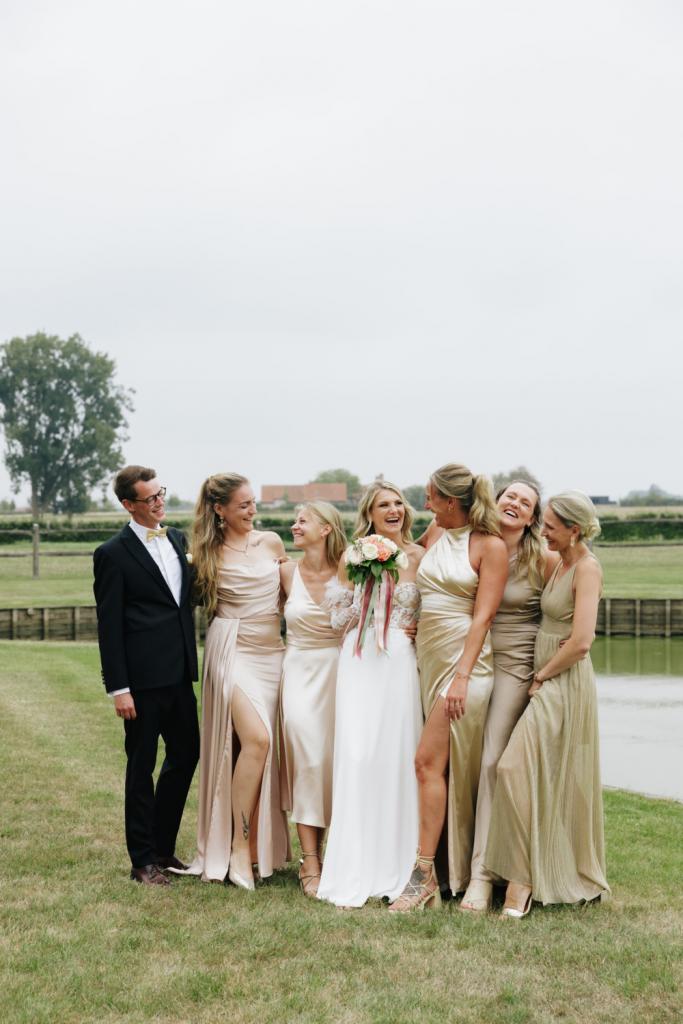 ‘Ik ging samen met mijn bruidsmeisjes en getuige op de foto. Ik had er maar liefst vijf, onder wie ook een man. Ze waren allemaal in het goud gekleed – my golden girls and boy!’
