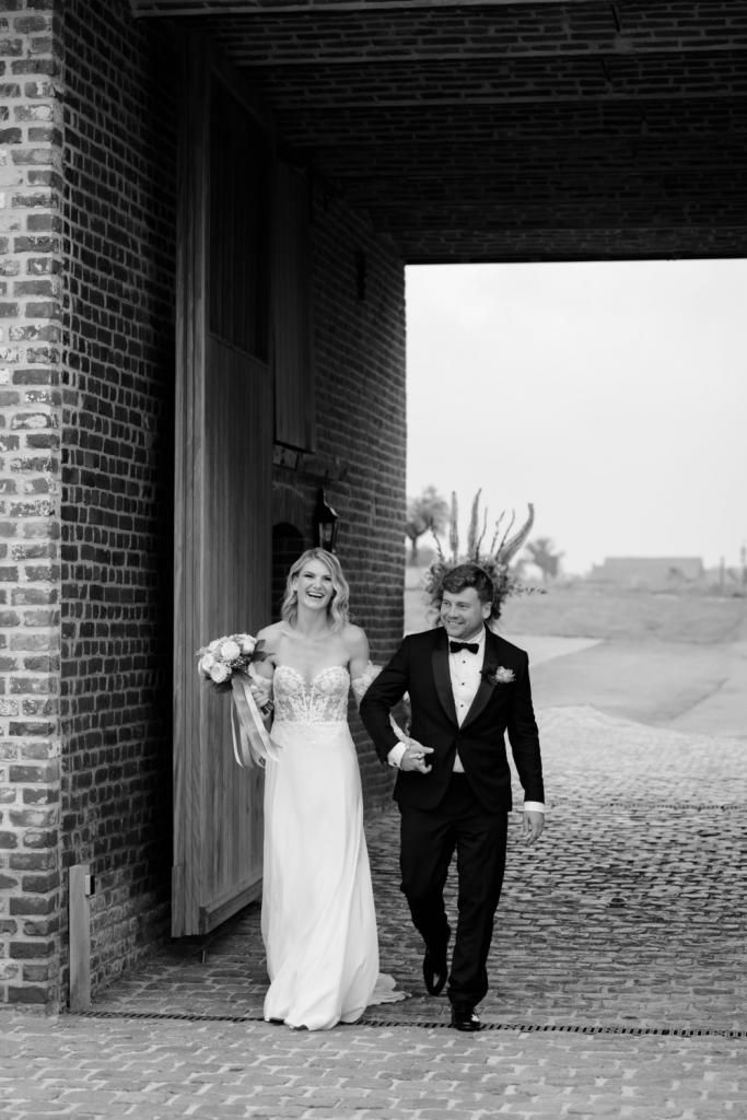 ‘Drink geen alcohol tot na de ceremonie. Ik heb matcha, water en non-alcoholische cava gedronken tot zo’n 19u en ben daar héél dankbaar voor. Sport ook vooraleer je aan de grote dag begint. Het helpt je om je zenuwen onder controle te krijgen en zorgt voor die extra shot adrenaline in je hersenen. Wij hebben op het laatste nippertje toch ook nog een videograaf ingeschakeld en zijn zo blij met die beslissing. Bewegende beelden zijn toch nog iets heel anders dan foto’s.’