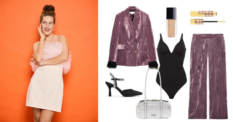 Nee, het hoeft niet altijd klassiek zwart te zijn voor de feestdagen. Ons covermodel bewijst dat een streepje roze net zo oogverblindend is, al zeker in combinatie met sprankelende details als ruches of veertjes.