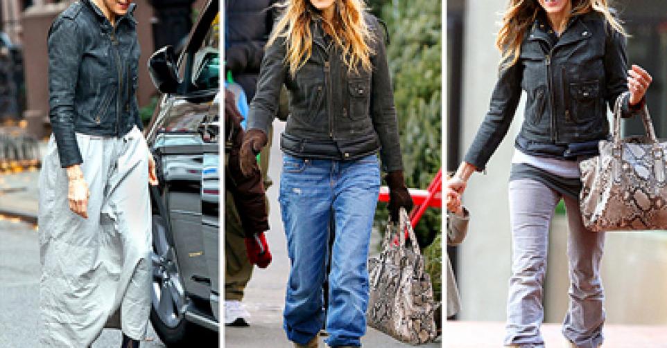 Sarah Jessica Parker’s favo fashion item is obvious een leren jasje van MIH: ze combineert het met alles! Met een rokjes en high heels, met een jeans of met laarzen. Welke combi vind jij het beste?